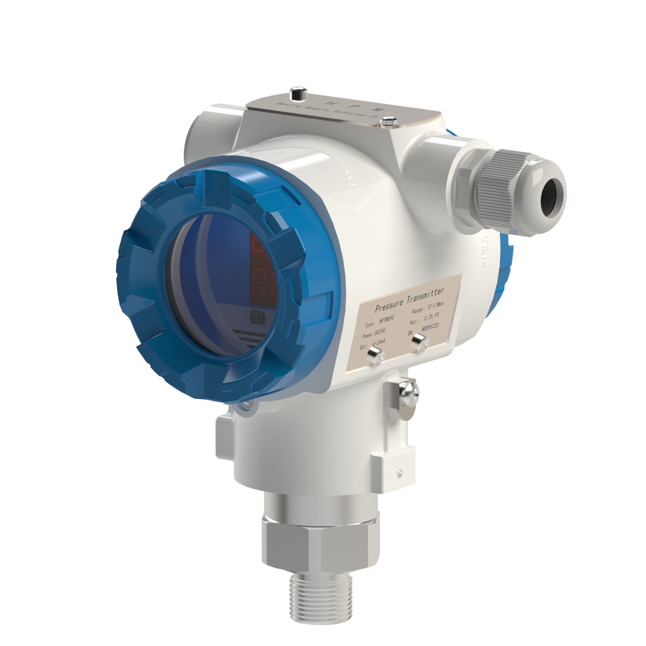 HPTM890 digital display temperature and pressure transmitter integrates a highly stable pressure-sensitive element and a high-precision temperature-sensitive element for independent measurement, enabling simultaneous and accurate measurement of medium pressure and temperature. It can output two standard 4-20mA signals. Additionally, this product features a 4-digit dual-row LED field display that can simultaneously show pressure and temperature values.